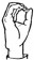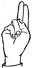 На ћирилици написано МОМИРА РУХТЕСКИ састоји се из 14 слова [?]. Исписано ћириличном једноручном азбуком за глувонеме: